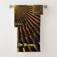 Une image fractale noire et jaune rayée, ressemblant à une étoile. Vous pouvez ajouter votre propre texte à deux endroits.