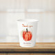 Cute paper cup with watercolor pumpkin design, featuring a thank you message and personalized text for a child's first birthday. Cute birthday paper cups designed for a little pumpkin theme birthday party, featuring hand painted watercolor pumpkin with watercolor wash background. Orange and brown Fall theme birthday.