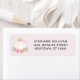 These fall baby shower return address labels are decorated with a watercolor pumpkin and flowers on a pale pink background.