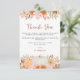 This floral baby shower thank you card is decorated with watercolor pumpkins, fall foliage, and stylish script typography.