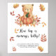 Celebrate with this teddy bear themed baby shower party! Watercolor cute teddy bear with an autumn pumpkin in its paws sits on autumn foliage. Matching items available.