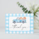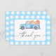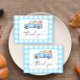 Pumpkins invitation featuring a watercolor blue truck filled with pumpkins. Blue cage. Personalize with your information.