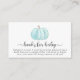 A cute baby boy shower invitation enclosure card that features a pastel blue watercolor of a pumpkin and "books for baby" in a pretty stylish soft grey script with swashes. Personalize the books for baby request in simple grey typography.