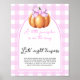 Invite your guests with this fall pumpkin with pink bow, pink cage and arch baby shower. "A little pumpkin is on the way"
