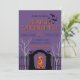 Invite your friends to a festive evening of creativity and fun with our Pumpkin Carving Party Invitation. This striking design features a rich purple background that sets the perfect Halloween mood. At the bottom, silhouettes of a graveyard entrance and a spooky fence frame the invitation, while eerie trees loom in the background, adding an element of mystery.