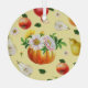 Orange pumpkin,chrysanthemum,pears,red apples on yellow background.Summer,autumn illustration of fruits,vegetables.Seamless pattern.Botanical art for print,book covers,textile,fabric,wrapping paper.