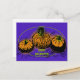 Three little pumpkins--what are they up to, huddled together like that? Just to keep them out of mischief, let's send them off with a Halloween greeting for a friend.