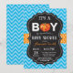 Pumpkin Fall Baby Shower Invitation Blue Chevron