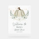 Welcome guests to your special day with this fall bridal shower party sign, featuring white pumpkin greenery and green elegant calligraphy script. The perfect white pumpkin bridal shower welcome sign for autumn bridal shower decor.