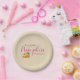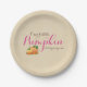 Pumpkin Fall First Birthday Party Paper Plates. Burlap Background.
