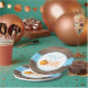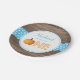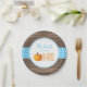 Pumpkin Fall First Birthday Party Paper Plates. Rustic Wood Chalkboard Background.