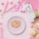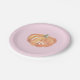 Pumpkin Fall First Birthday Party Paper Plates. Pink Background.