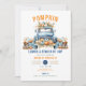 Blue Pumpkin Fall leaves and stacks of hay 5th Birthday Truck Gingham Invitation