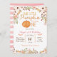 With pink, peach, gold, & glitter. It is perfect for a fall girl first birthday invitation.