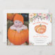Pumpkin First Birthday Invitation with custom photo. Girl or Boy Fall Birthday Party Invitation. Watercolor Floral Flower Background. Pink and Orange. 1st First Bday Invite. 1st 2nd 3rd 4th 5th 6th 7th 8th 9th 10th, Any Ages. For further customization, please click the "Customize it" button and use our design tool to modify this template.