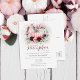 This is a cute pumpkin themed baby shower postcard invitation featuring a beautiful watercolor pink pumpkin patch with florals and greenery. Use this invitation for a girl baby shower and let everyone know that you have a little pumpkin on the way.