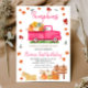Pumpkin, Hay, Leaves, Fall Birthday Pink Truck Invitation
