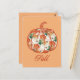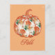 Postcard in a design! featuring a pumpkin outline filled with a rich floral chrysanthemum pattern in warm orange and green hues, it captures the essence of autumn.