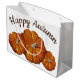 Show your love for autumn with these pumpkin gift bags. Featuring warm fall colours of brown, orange, red and yellow. I created this squash pattern from an image in my original acrylic painting. Personalize by changing or removing the text. Customize by changing the background colour.