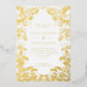 An elegant gold foil fall wedding invitation with a frame of hand drawn pumpkins and leaves. Personalize with your details.