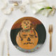 Cute Halloween design with a young pumpkin eating Halloween candy on top of, not so happy Dad pumpkin. Orange and black Halloween party plates.