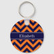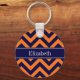 Pumpkin Navy LG Chevron Navy Blue Name Monogram Keychain