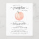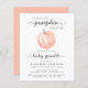 A cute, cheerful and budget-friendly gender-neutral baby sprinkle invitation featuring "A Sweet Little Pumpkin Is On Its Way" written in a mixture of soft grey modern typography and a stylish script, and a pastel orange pumpkin watercolor. You can personalize the mother's name and shower details in simple grey typography.