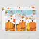 Three panels featuring pumpkins and falling leaves. A fall invitation suitable for any autumn celebration.