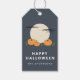 Attach our festive tags to your Halloween party favours, treat bags and more for a custom touch. Modern design features a midnight sky background with a full moon rising over a pumpkin patch filled with vibrant orange pumpkins. "Happy Halloween" appears beneath in bold, modern white lettering. Personalize with your name(s) or custom message using the field provided. Tags reverse to solid white for easy writing.