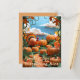This Pumpkin Patch Harvest Postcard captures the cozy spirit of fall with a vibrant paper-cut style illustration of a bountiful pumpkin field. Bright orange pumpkins with teal stems sit among lush green vines, framed by a brilliant blue sky with fluffy white clouds. Among pumpkins, one smart turkey masquerading as a pumpkin, Perfect for Thanksgiving greetings, autumn gatherings, or sending seasonal cheer, this postcard brings the warmth and charm of the harvest season to friends and family.