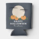Add a festive touch to your favourite spooky libation with our personalized Halloween party can cooler. Modern vintage style design in midnight blue features a full moon rising over a pumpkin patch with "Happy Halloween" beneath in bold, modern white lettering. Personalize with a name or message of your choice in retro style script typography using the field provided.
