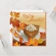 Falling autumn maple leaves provide a pretty backdrop for this tasty slice of pumpkin pie topped with cinnamon sprinkles on whipped cream - yum! Customizable invitation for Thanksgiving Dinner. For help or questions, email me: cheryl@cheryldanielsart.com/contact. Cheryl Daniels © 2013.