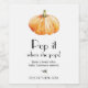Pop it when she pops! Pumpkin themed tag, perfect for a baby shower to have guests celebrate when baby arrives! Customize with name, event date or custom text.
