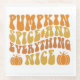 This delightful fall design captures the essence of the season with the phrase "Pumpkin Spice and Everything Nice" presented in a bold, retro-inspired font. The text is arranged in a playful, wavy layout that gives the design a dynamic and energetic feel. Each word is filled with warm autumnal hues, including shades of orange, yellow, and brown, which evoke the cozy and inviting atmosphere of fall. The design is further embellished with charming illustrations of pumpkins and a single autumn leaf, adding a touch of seasonal flair.