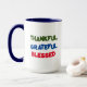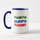 Cozy up with this charming mug featuring a pumpkin, leaves, and the words "thankful, grateful, blessed." Perfect for your morning coffee or hot cocoa. Celebrate the fall season with this festive mug. The warm colours and inspirational message will brighten your day.