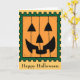 Cute Jack-O-Lantern pumpkin faced stamp Halloween decor. Pumpkin face is orange with green trim. Design created by Black Brook Photography with graphic from Pixabay September 2014.