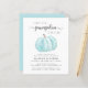 A cute budget-friendly fall baby boy shower invitation featuring "A Sweet Little Pumpkin Is On His Way" written in grey typography and a stylish script, and a pastel blue pumpkin watercolor. Personalize the mother's name and the shower details in simple typography.