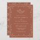 Pumpkin Wedding Invitation. Featuring hand-drawn line art pumpkins and botanicals, these invites create a simple yet elegant look with cream text on a terracotta background. This classic, bohemian style is sure to impress your guests and make your wedding just as memorable as the moment you said “I do”. Find matching products in the Terracotta Pumpkins Line Art Wedding Invitation.