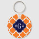 Pumpkin White Moroccan #5 Navy 3 Initial Monogram Keychain