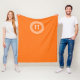 Pumpkin Wht Greek Key Rnd Frame Initial Monogram Fleece Blanket