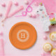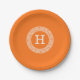 Pumpkin Wht Greek Key Rnd Frame Initial Monogram Paper Plate