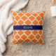 Pumpkin Wht Moroccan #5 Navy Blue Name Monogram Throw Pillow