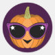 Pumpkin with Cool Retro Cat Sunglasses Halloween Classic Round Sticker