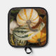 Safely handle baking trays, cookie sheets and muffin tins from the oven with this pot holder with black trim that features a still life photo image of various colours and varieties of pumpkins and squash. Perfect for the autumn season, Halloween and Thanksgiving! Select your pot holder backing style.