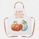 Pumpkins Happy Friendsgiving burnt orange fall all-over print apron for Thanksgiving. It features burnt orange and white pumpkins with green leaves and your text.