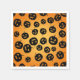 Seamless pattern design with Halloween pumpkins silhouettes on orange background.
