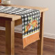 This 16 x 90 black gingham runner with watercolor gourds, leaves and pumpkins would look fabulous on your table or side table. It's festive and fun yet classic and traditional. Add that little pop of fall!