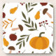 Stylized fruits, mushrooms, and leaves in golden, russet, and olive hues create a modern harvest look. Fresh yet timeless, perfect for autumn kitchens and dining spaces.