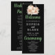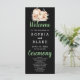 On the back of the program, you'll discover a carefully curated list of the wedding party presented in classic black and grey. The predominantly simple block font ensures clarity and sophistication, while the words "Welcome," "Ceremony," and "Wedding Party" take centre stage in a pretty decorative script font. These scripted elements add a touch of elegance and personalization to the design, making your program a delightful keepsake for you and your guests.