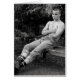 Cette belle carte comporte un jeune type chaud de punk rock s'asseyant sur un banc. Masquez à l'intérieur.